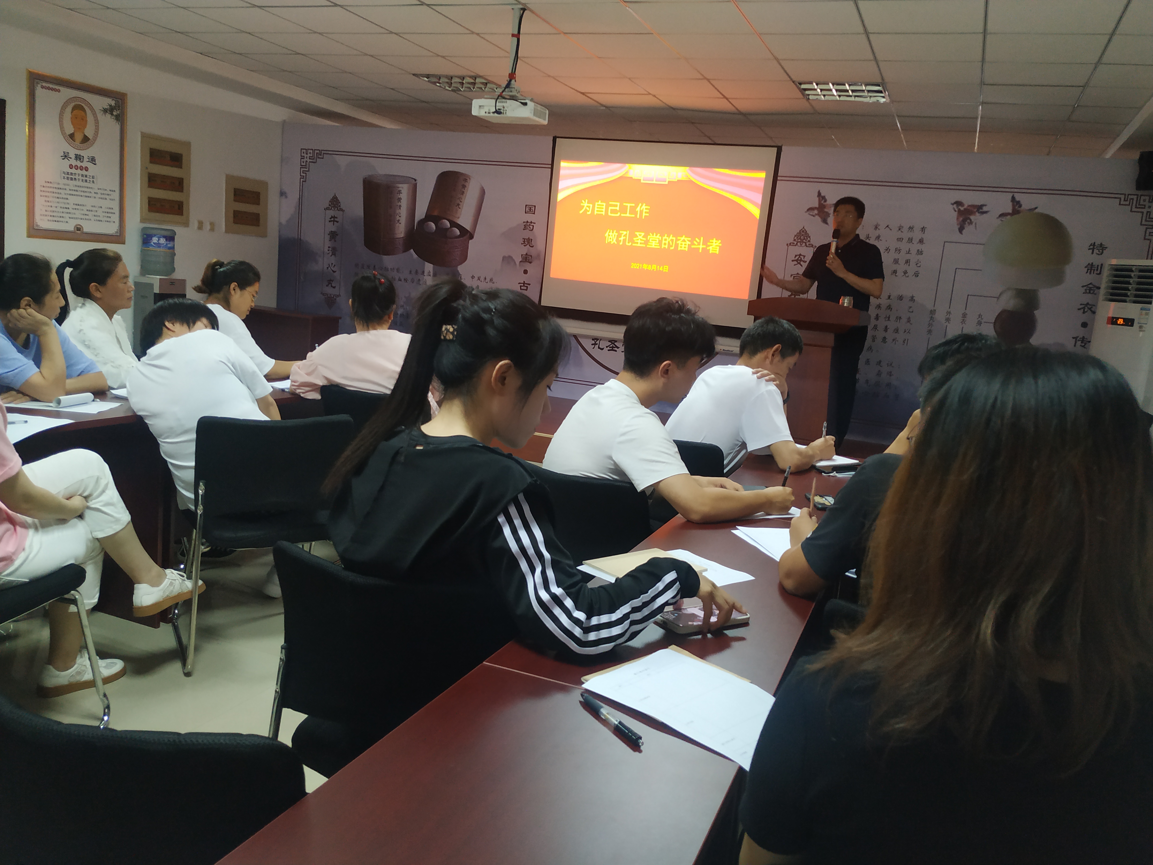 為加強企業(yè)文化建設(shè),鼓勵員工爭當企業(yè)奮斗者,2021年8月14日,公司在辦公樓三樓會議室召開了“為自己工作,做孔圣堂的奮斗者”主題培訓大會。